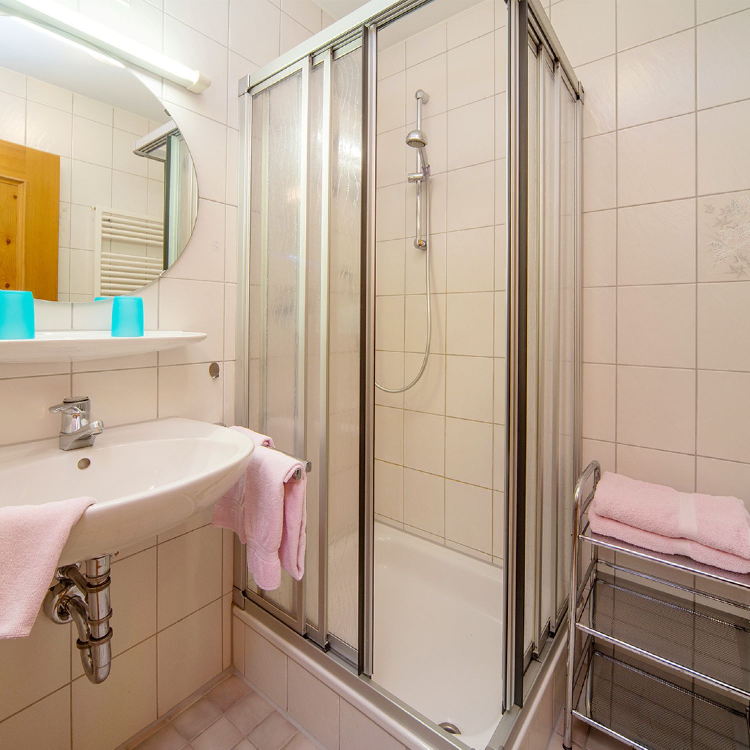 - shower, hair-dryer and towels